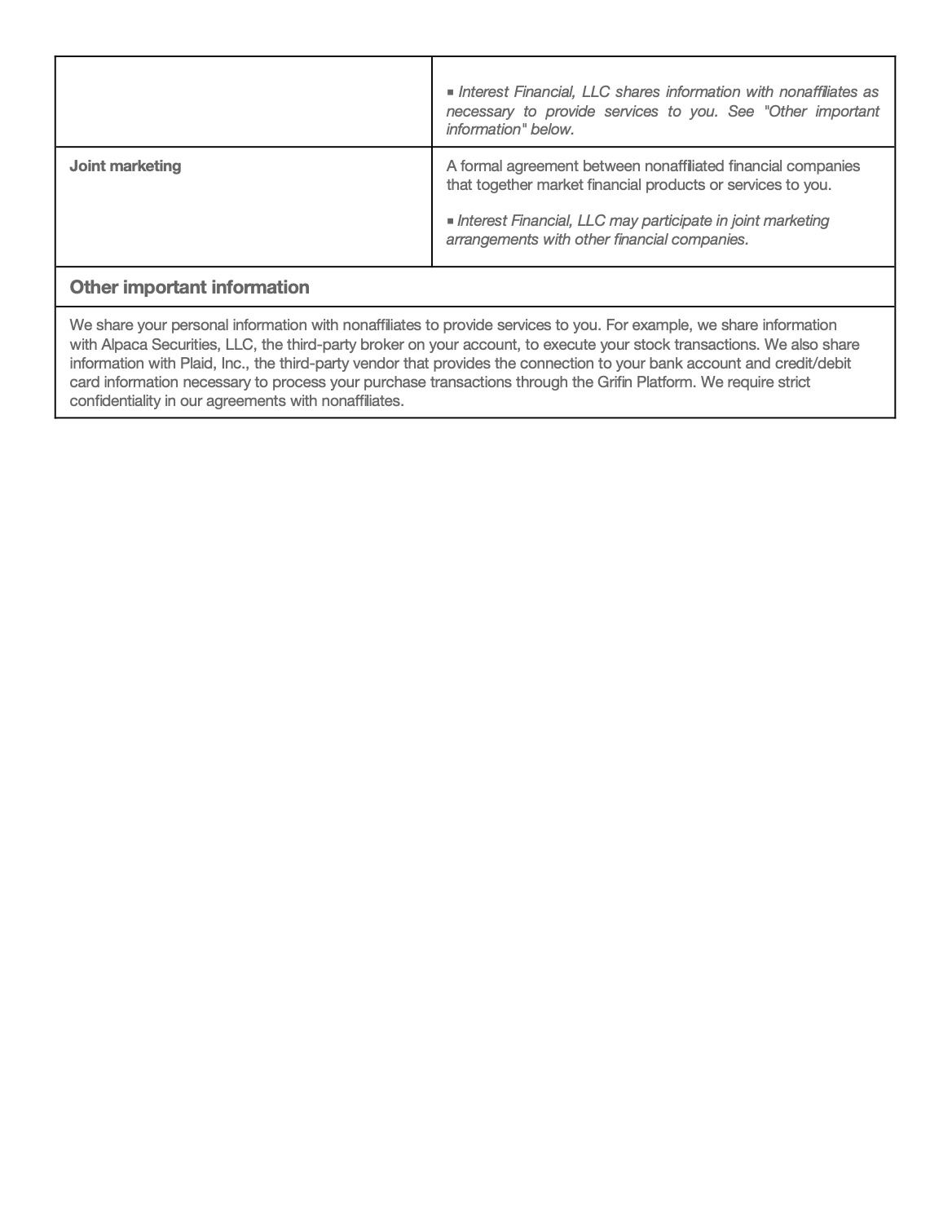 - to present offers and opportunities related to financial products and services from Grifin, Interest Financial, and third party providers;